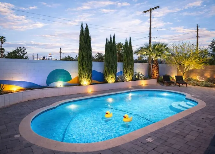 Situata a una distanza di 3 km dall'SLS Las Vegas Casino, la Paradise Palms Retreat - Mid Century Modern Pool Villa Near Strip Las Vegas offre accesso a vari luoghi turistici della zona.